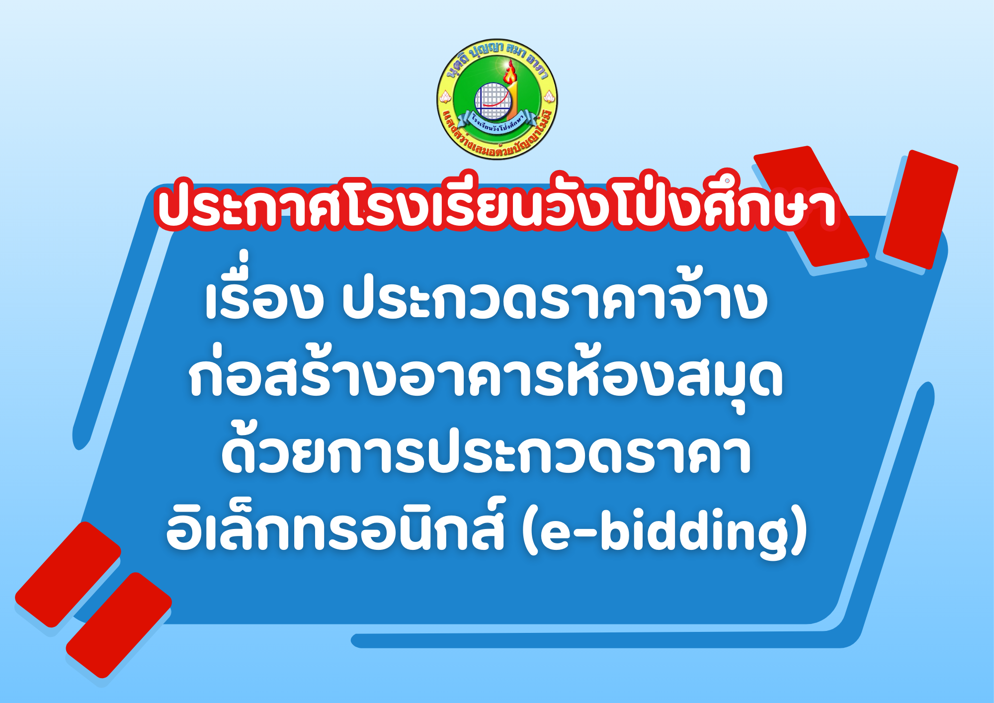 2 ก.พ. 2569 : ประกาศโรงเรียนวังโป่งศึกษา เรื่อง ประกวดราคาจ้างก่อสร้างอาคารห้องสมุดด้วยการประกวดราคาอิเล็กทรอนิกส์ (e-bidding) ( อ่าน 7 ครั้ง )