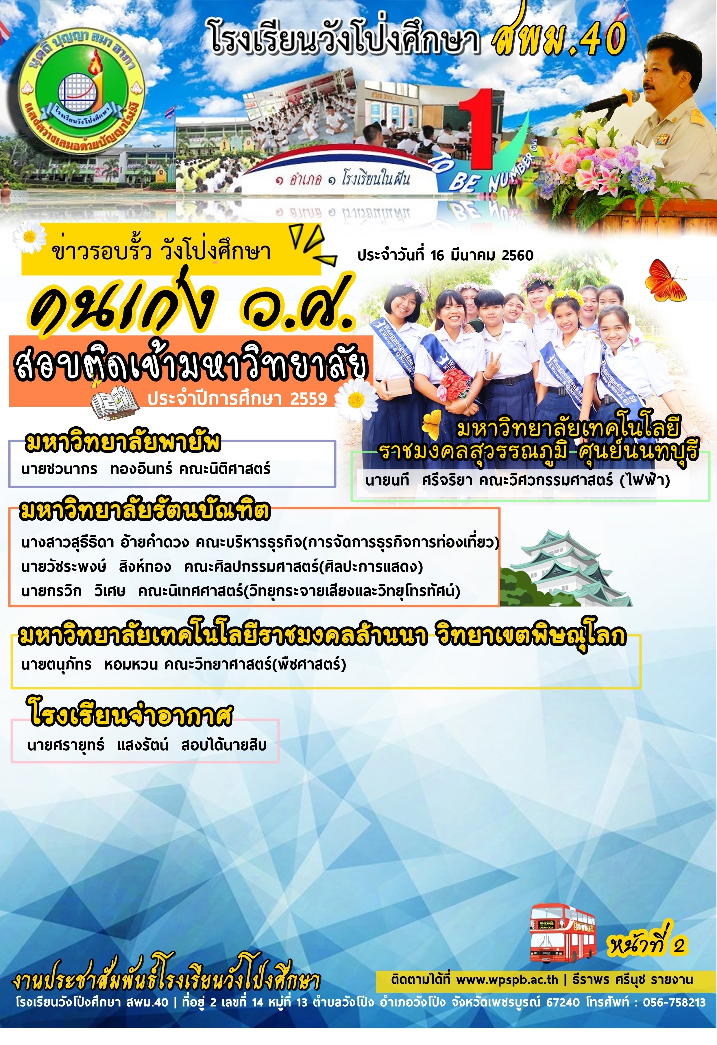 คนเก่ง ว.ศ. สอบติดเข้าสถาบันการศึกษาต่างๆ