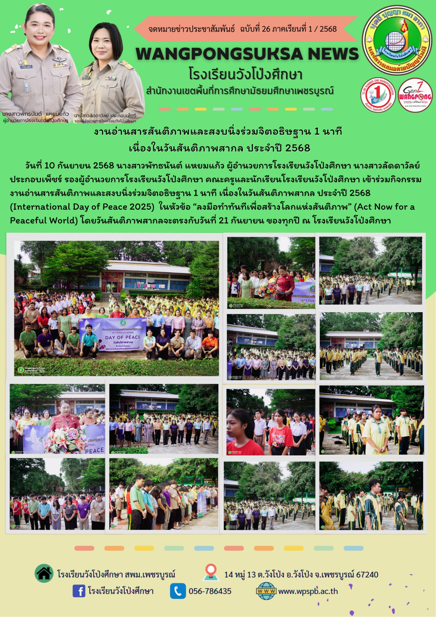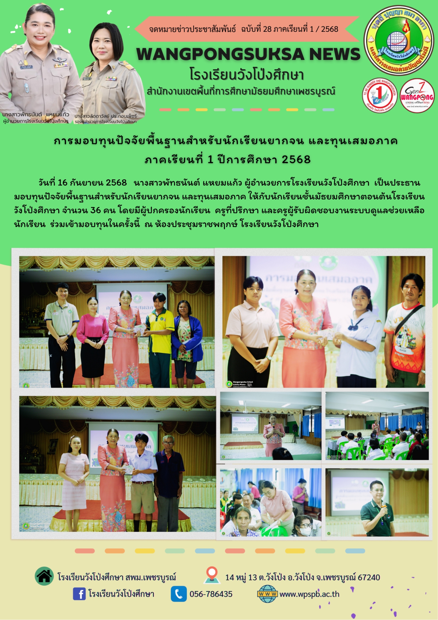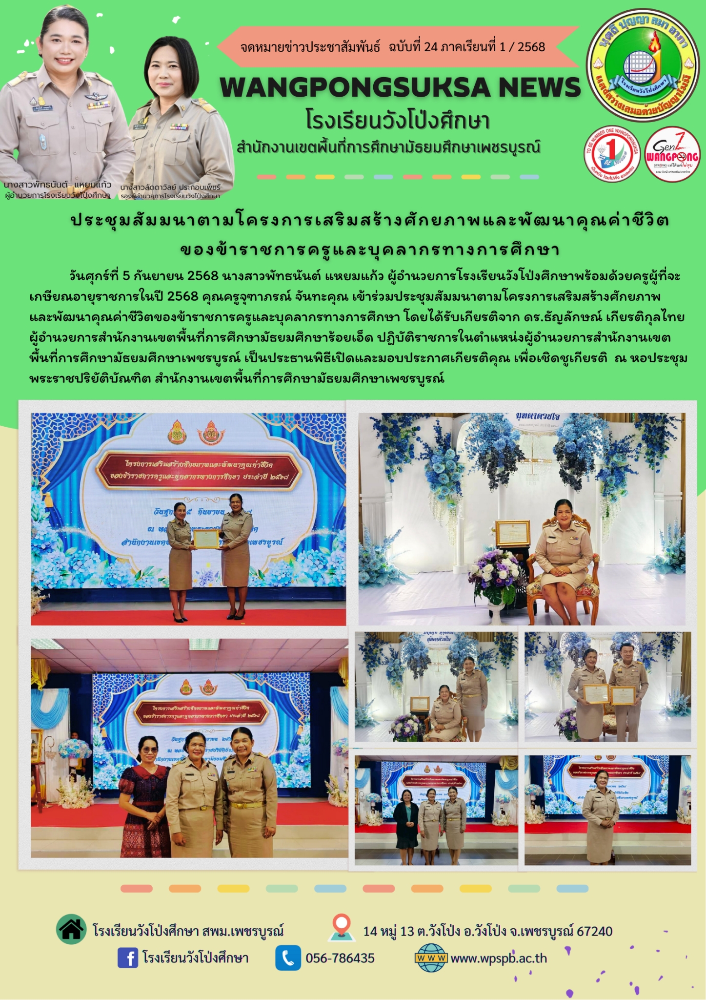 1 สิงหาคม 2568 : ประกาศโรงเรียนวังโป่งศึกษา เรื่อง โรงเรียนปลอด 0 ร มส. มผ. ภายใต้นโยบาย